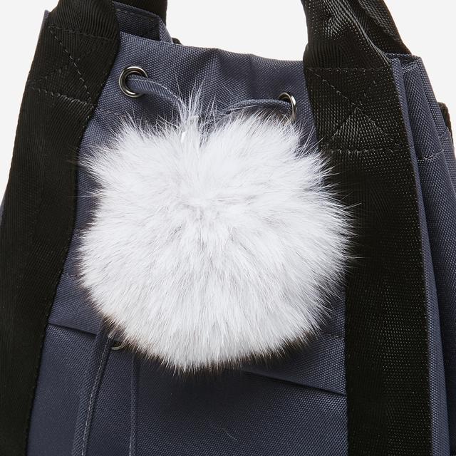 탈착가능한 퍼 폼폼 장식과 하단의 빅 로고 프린트로 포인트를 준 백팩입니다. 패브릭 소재로 가볍습니다.