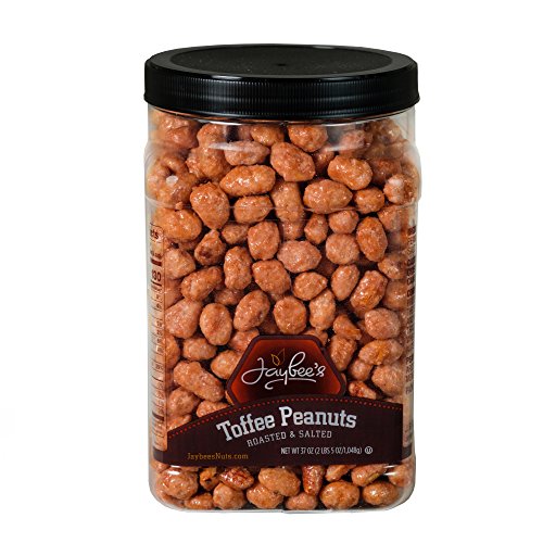 Jaybee's Tasty Toffee Peanuts - Great for Holiday Gift Giving or As Everyday Snack - Reusable Container - Certified Kosher Perfect Nuts (37 Ounces)