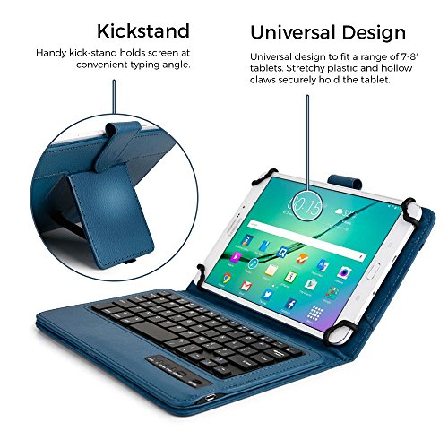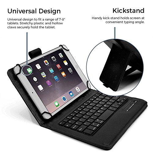 -. Feature : UNIVERSAL DESIGN TO FIT 7 - 8" INCH TABLETS - designed to fit any tablet with 7'' to 8'' inch screen. Rubberized, silicon covered scratch proof claws tightly fit on 4 corners to hold tablet securely. Claws expand from 4.3'' to 5.4'' width (109-137 mm) & 6.7'' to 8.3'' length (170-211 mm). Open sides provide easy access to all tablet ports, buttons and speakers. / 2-in-1 LEATHER FOLIO CASE WITH STAND & DETACHABLE KEYBOARD - multi purpose functionality > use as compact keyboard folio case or basic folding folio tablet case. Foldout stand supports hands free video screen display. Remove magnetic keyboard tray to turn keyboard cover into classic portfolio case. Premium faux leather protective exterior provides durable, red, shockproof cushion when dropped. Soft suede microfiber interior protects screen from scratches and breaking. / WIRELESS BLUETOOTH 3.0 RECHARGEABLE QWERTY KEYBOARD FOR 7 - 8" INCH TABLETS - QWERTY keyboard compatible with Android, Windows and iOS platforms. Easy setup Bluetooth connection automatically connects with tablet. Features 59 laptop-like keys; 14 shortcut keys to tablet's native functions; 10m working range; 100 hour rechargeable lithium polymer battery. / IDEAL FOR TYPING IN BUSINESS, SCHOOL, TRAVEL OR HOME - designed to stand your tablet hands free so you can focus on work, reading, watching videos, typing like on normal computer laptop. Executive looks great for man, woman, students, boys, girls, kids and teens in school. Weighs same as 1x vinyl record - 280 g / 0.6 lbs. / RISK-FREE PROMISE - If this case doesn't make typing on tablet easier, doesn't convert your tablet into a laptop and doesn't make you work & study faster, then you are entitled for a full 100% refund - no questions asked! Choose express shipping with DHL - guaranteed delivery in 2-3 days.