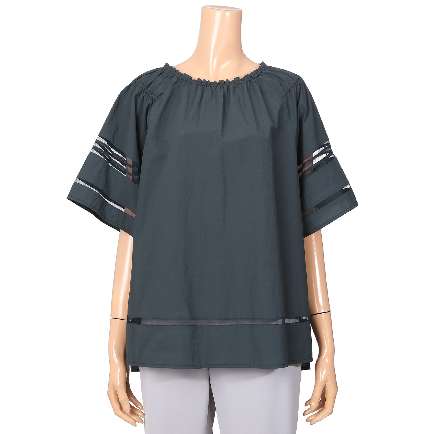 라운드형 반팔 블라우스입니다