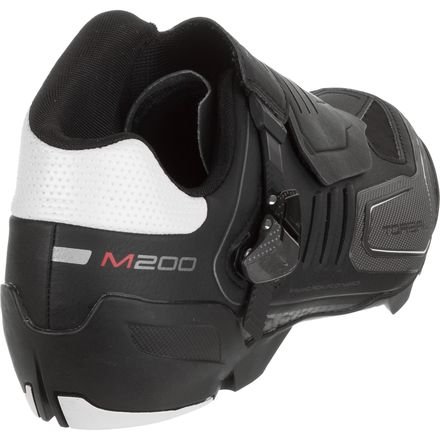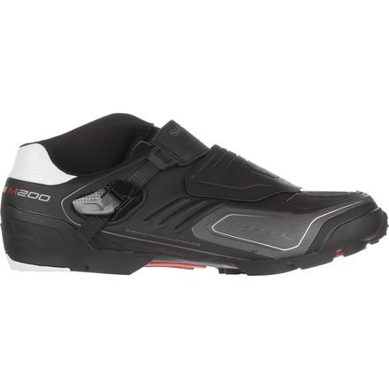 Studio : Shimano Publisher : Shimano Binding : Apparel Product Description When creating its SH-M200 Shoes, Shimano sought to strike a balance between XC lightness and enduro aggro. The SH-M200 gives trail and all-mountain/enduro riders the traction and protection that they need around their feet on a hard ride without sacrificing responsiveness on the pedals. Shimano also offers the shoe in Wide width, so there's no need to cram your toes into too-narrow cages, spending your ride counting down the minutes until you can take them off. The SH-M200 achieves a slim fit and consistent power transfer courtesy of its synthetic leather upper and carbon-injected nylon sole, which earns a stiffness rating of eight out of 12 on Shimano's stiffness index. Shimano also adds its Torbal (Torsional Balance) midsole to the SH-M200's to allow the foot to move more naturally during descents rather than keeping it locked in place completely, but the added flexibility doesn't impact the carbon-injected sole's ability to transfer power once you're pedaling again. When you do start pedaling, a reinforced heel stabilizer helps to hold your foot in place, ensuring you don't lose any power on challenging ascents, while the shoe's asymmetrical collar protects the vulnerable inner ankles from bumps and bruises. For the times technical terrain necessitates a dismounting, the lugged rubber outsoles on the SH-M200's provide reliable grip until you can start pedaling again. 0