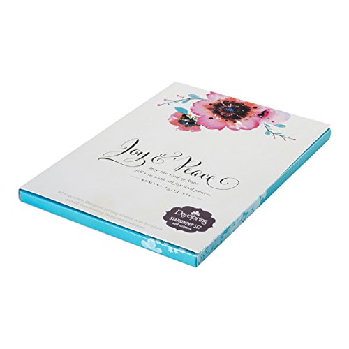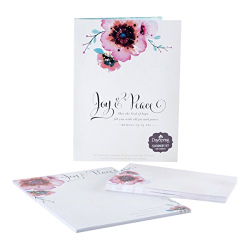 Studio : DaySpring Company Publisher : DaySpring Company Binding : Office Product Product Description This adorable joy Peace stationery set includes 40 writing sheets and 20 envelopes. The writing sheets have "joy Peace," on the top of each sheet. What Cute sheets to write encouraging notes to friends and loved ones! 0