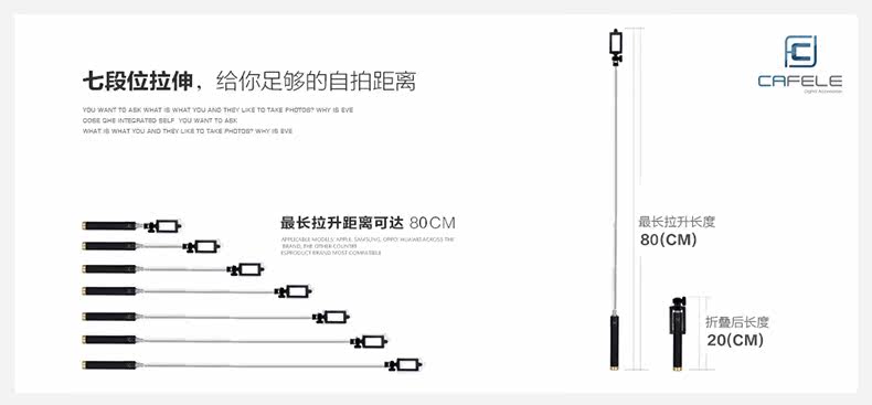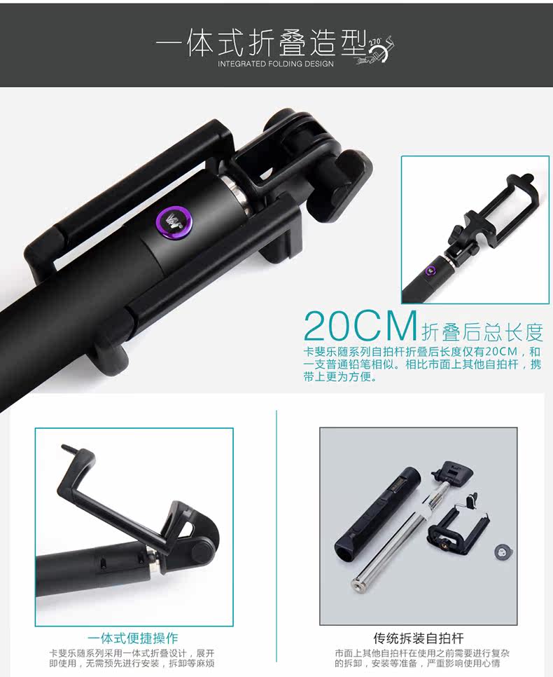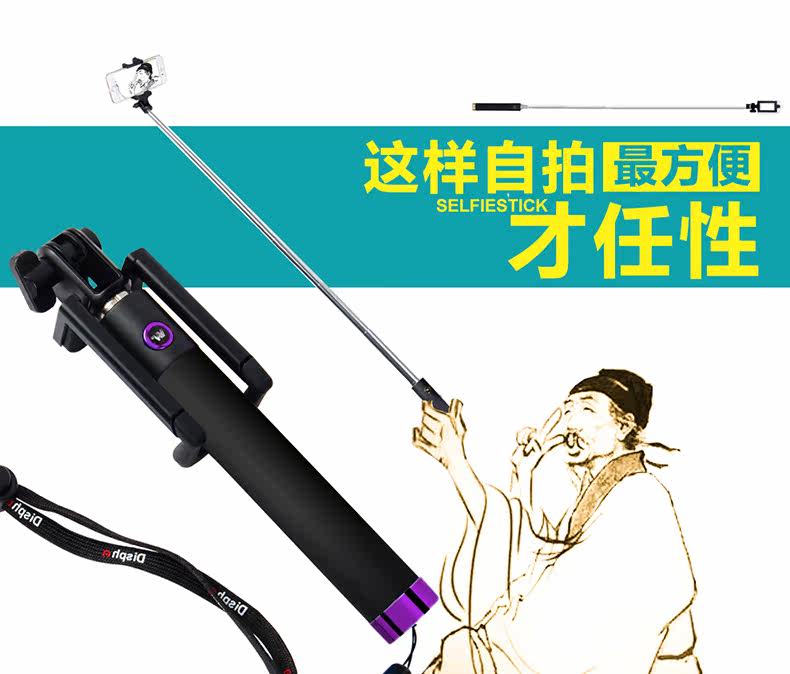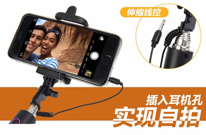 手机自拍杆线控 蓝牙遥控自拍神器杆迷你神棍干折叠棒拍照架
