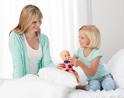 This soft and cuddly newborn is all dressed up and ready for some loving! Little Lady doll looks adorable dressed in her ladybug print top with red-checkered sleeves, blue collar with matching blue ruffles and little red shorts. Her bottle fits perfectly into her mouth so that girls can play out the simple everyday moments of feeding and comforting – and get to be just like their mommies, too! She also comes with a soft pink blanket, perfect for daytime cuddles and bedtime snuggles! Your little mommy will love caring for this Little Lady and showing her off to the world! Colors and decorations may vary.Feature
