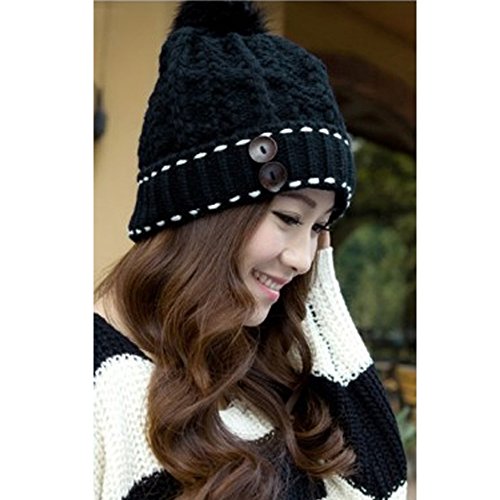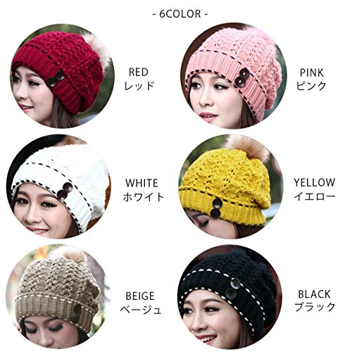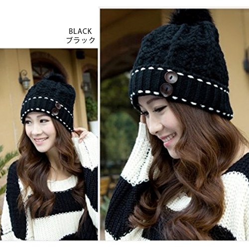 원본상품명: ポンポン付きニット帽/レディ?ス/カラフル/キャップ/毛?帽子/スノボ/スキ?/mz2568 (ブラック)