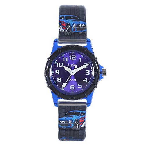 -. Binding : Watch -. Brand : Lucky by Dingbats -. Department : boys -. EAN : 0811077001124 -. Feature : Fun Muscle Cars Theme / Fun die-cut second hand / Japan Quartz Movement / Fits wrists 5.5" - 7.5" / Limited One Year Warranty -. Label : Too Stars Inc. / Dingbats -. Manufacturer : Too Stars Inc. / Dingbats -. MPN : LKW122 -. PartNumber : LKW122 -. ProductGroup : Watch -. ProductTypeName : WATCH -. Publisher : Too Stars Inc. / Dingbats -. Studio : Too Stars Inc. / Dingbats -. Title : Lucky Kids Quartz Watch "Muscle Cars", Boys, Blue #LKW122 -. UPC : 811077001124