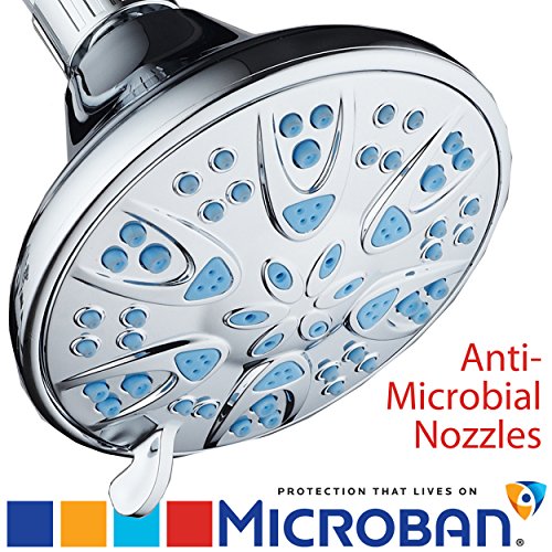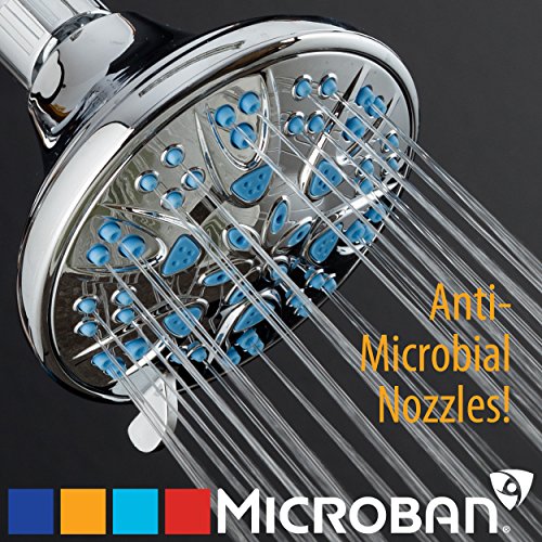 Antimicrobial / Anti-Clog High-Pressure 6-setting Shower Head by AquaDance with Microban Nozzle Protection from Growth of Mold, Mildew & Bacteria for Stronger Shower! 3 Jet Color Choices