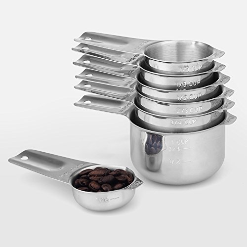 Measuring Cups Set of 7 with 1/8 Cup Coffee Scoop, 1Easylife Stainless Steel Metal Measuring Cup, 7 Piece Stackable Set with Spout