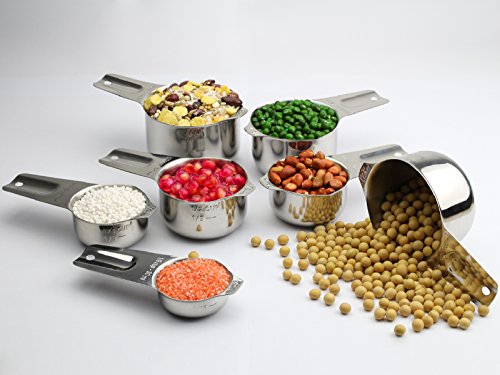 - PREMIUM HIGH QUALITY MATERIAL of 304 18/8 STAINLESS STEEL: Food grade material of 304 stainless steel, satisfying feeling of solidity, would never rust bend or break. The last kitchen measuring cups set you need!