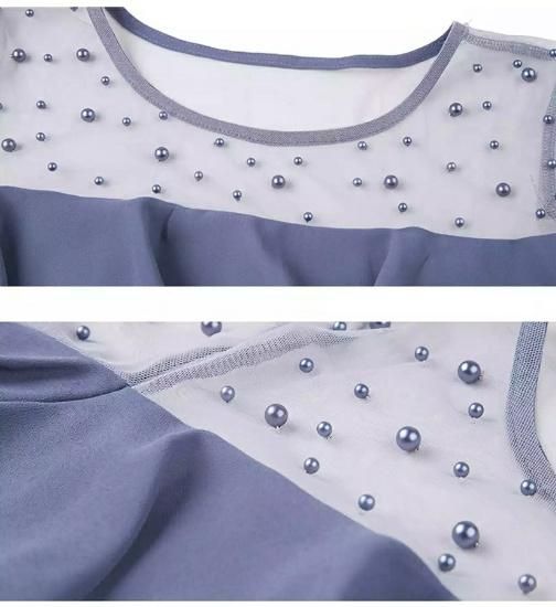 パーティードレス ミニ丈 ワンピース シフォン 七分袖 パール シースルー 透け感 リボンベルト ブラック ブルーラベンダー 大人 上品 お呼ばれ デート drgz2205