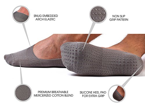 -. Binding : Apparel -. Brand : LA Active -. Department : mens -. Feature : TRUE NO SHOW NON SLIP: Tired of socks that bunch up and slip off while you're wearing them? Have you tried socks with grips on the heels, only to find that they still don't stay on? We felt the same pain and designed a no show sock that truly prevents slipping inside your shoe. Obtain both the look and feel you want with a low profile design and added grip pattern on the sole of the foot. / BUILT TO LAST: Move confidently in socks engineered to stay in place all day. Our premium mercerized cotton material is strong and resistant to mildew as well as lint. Our sock is engineered to stretch while feeling snug and stable due to a silicon pad on the heel as well as a grip pattern on the sole. / WEAR WITH OR WITHOUT SHOES: Put them on with your favorite low-cut shoes including loafers, sneakers, boat shoes, , slippers, or boots, and keep them on at the house or gym to reduce slipping on slick floors. / PROTECTS YOUR FEET: Our soft and breathable design blocks dirt and reduces blisters, keeping your feet fresh and shoes odor-free. / DESIGNED FOR ALL GENDERS: Take great strides with a stretchy fit and neutral colors that match any style. Each pack comes with 1 pair in Jet Black and 1 pair in Anchor Grey that fits men's shoe sizes 8 - 12 and women's sizes 6-9. -. IsAdultProduct : 0 -. ProductGroup : Apparel -. ProductTypeName : SOCKSHOSIERY -. Size : Large -. Title : Unisex Mens Womens No Show Loafer (3 Pack) Non-Slip Grip Liner Socks