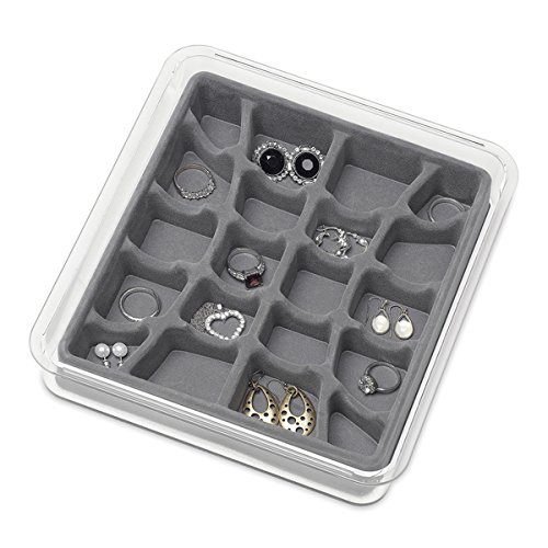 -. Title : Whitmor Clear & Grey 20 Section Stacking Jewelry Tray