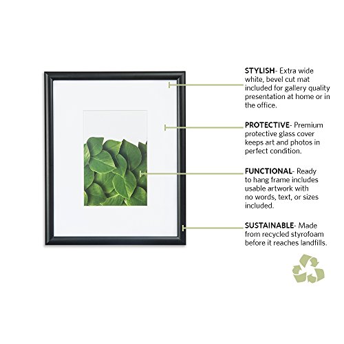 -. Feature : Eco-Friendly and socially conscious. Frames are made of recycled polystyrene, keeping tons of it out of landfills. Reducing the amount of this material and its effects on the environment / Minimalist masterpiece. Thin profile frame that pairs with the wide mat for a beautiful contrast, giving it a fine art appeal. / Available in sizes 4x6, 5x7, 8x10, 11x11, and 14x14. The 11x11 and 14x14 also come in sets of two. Also check out the Kayan 10pc. Set. / Wide mats for a distinctive look [4x6 has a 2x4 opening, 5x7/ 2.5x4 opening, 8x10/ 4x6 opening, 11x11 & 14x14/ 4x4 opening] / All available in Gold, Silver, Black, and White