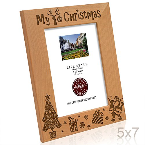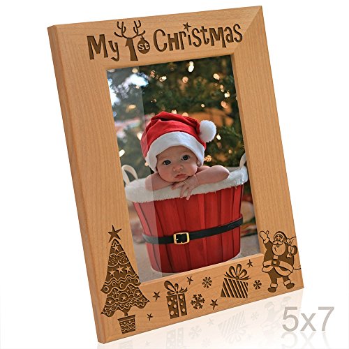 Kate Posh - My First (1st) Christmas Picture Frame, Engraved Natural Wood Photo Frame, Baby's First Christmas Gifts, New Baby Decor, Santa & Me Gifts (5x7-Vertical)