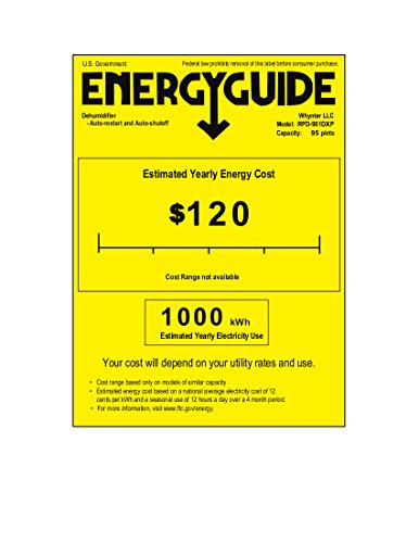 The Whynter Energy Star RPD-951DXP portable dehumidifier is a high capacity unit with an outstanding capability of removing up to 95 pints of moisture from the air per day. With its water pump drainage option, large internal reservoir and environmentally friendly design, this unit creates a very efficient and powerful companion to any home or workplace dealing with high levels of humidity. This portable dehumidifier can be continuously operated with 3 drainage options: manual drain, gravity drain and condensate pump drain. The condensate pump can pump out (and up) condensation water through the included 16.5' drain for continuous water removal with approximately 15' of vertical lift. The Whynter Energy Star RPD-951DXP portable dehumidifier includes a 25-pint bucket that can be removed and emptied. For low-temperature area usage, this portable dehumidifier has an auto defrost function to ensure moisture does not freeze and prevent further moisture extraction. As indicated by its Energy Star qualification for lower energy costs, the Whynter RPD-951DXP provides cost-effective and energy-efficient operation without sacrificing design and performance. Built for high capacity usage, this unit is suited for enclosed areas as large as 3800-4500 sq. ft.Feature