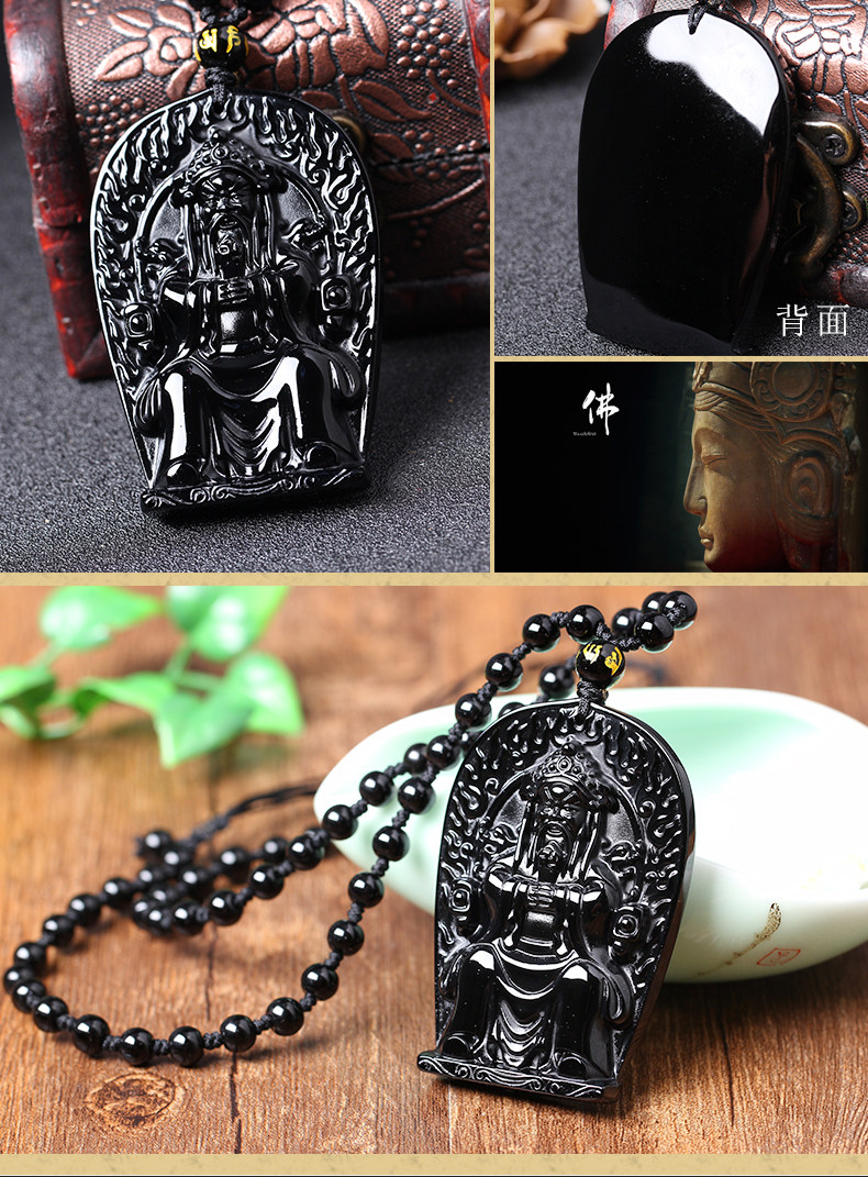 天然乌金黑曜石财神吊坠