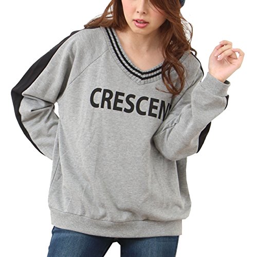 -. Title : (Goldjapan)ゴールドジャパン 大きいサイズ 大きいサイズ レディース サイドライン Vネック ロゴ スウェット ニット セーター トップス 長袖 体型カバー
