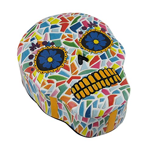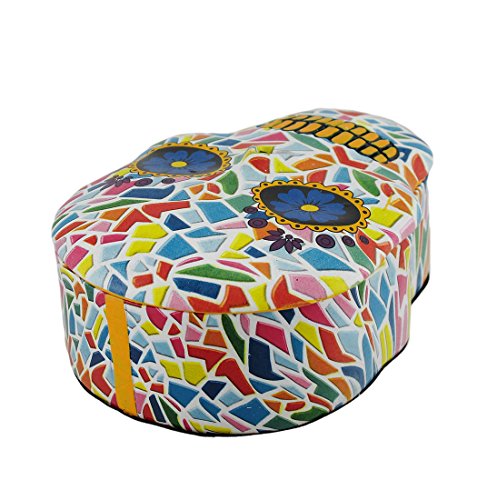 Colorful Mosaic Finish Molded Sugar Skull Trinket/Stash Box