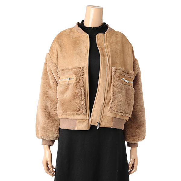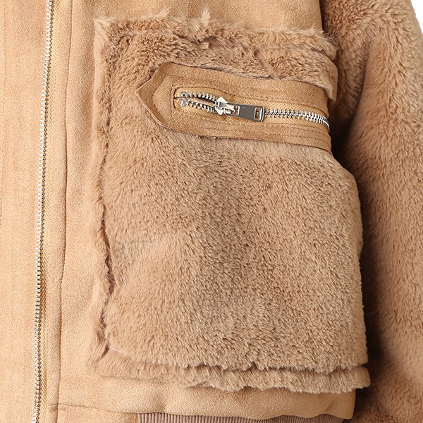 포근포근하고 따뜻한 소재이며 인조 무스탕과 퍼의 조화가