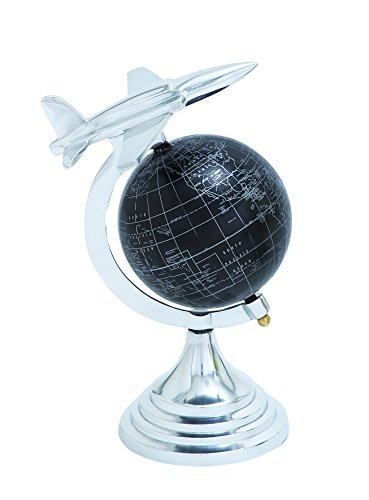 Studio : Benzara Publisher : Benzara Binding : Kitchen Product Description Brighten up your interiors with this excellent Aluminium globe. This sturdy modern Aluminium globe with airplane Axis design radiates the beauty of the medieval era in a modernistic format. It could provide the room with a source of positive energy as it represents success in life. It can ideally be placed in your study or on a table in the living room. This home decor item is crafted from high quality Aluminium that is used in making the spherical structure of the globe. The sophisticated style and intrinsic features of this compact looking metal globe makes it more captivating and stylish. The metallic globe is washed in pure matte black that is then used as a background to print the world map in fine white lines. It has a glittering Axis that sports an aircraft at the top which suggests flight in general. It is an ideal gift item for your loved ones too.. 0
