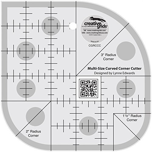 [Description] Use the Curved Corner Cutter to create round corners on any of your projects. Choose curves with a radius of 1-1/2; 2; or 3 inches. Each curve features black 45 and 90 degree markings. Or_ mark a scalloped border. Exclusive gripper holds the fabric in place while cutting_ eliminating slipping and miss-cuts.Comes with fully illustrated step by step instructions or scan the QR Code printed on the ruler to view a video demonstration.