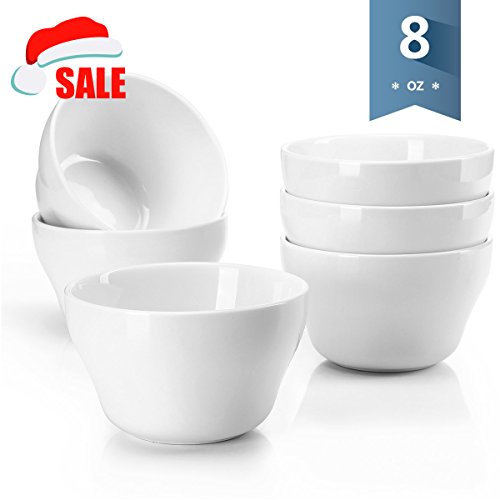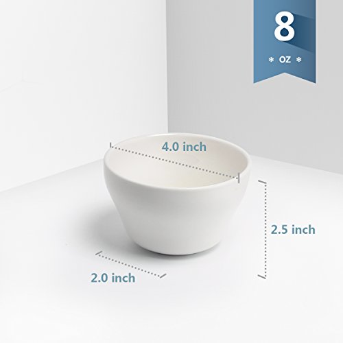 Sweese 1301 Porcelain Bouillon Cups - 8 Ounce Dessert Bowls for Cottage Cheese, Fruit, Crackers, Salsa, Little Size Dishes - Set of 6, White