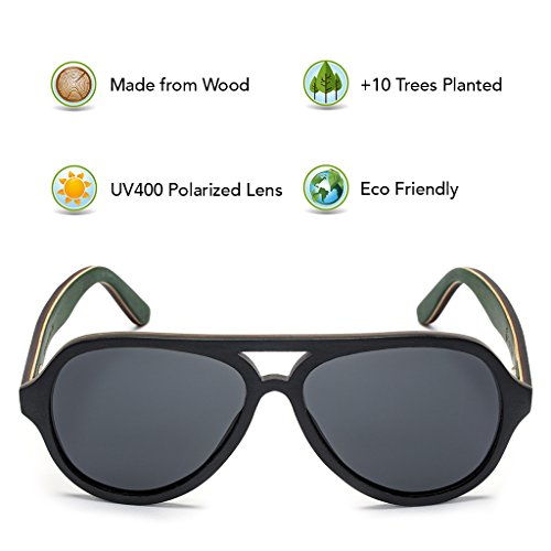-. Brand : Tree Tribe -. Color : multicoloured -. Department : unisex-adult -. Feature : POLARIZED LENSES - Provide crystal clear vision and anti-glare effect with UV400 protection. 56mm x 47mm lens. / UNIQUE WOODEN FRAMES - Because of the organic nature of wood, each pair has slight variations in the wood grain. / CLASSIC NATURAL STYLE - Classic aviator style with a natural interpretation. Frame size: 146mm front width x 156mm length x 55mm height (5.7" x 6.1" x 2.2") / BAMBOO CASE AND MICROFIBER POUCH - Includes a high quality bamboo case and microfiber cloth pouch to protect and clean your glasses. / WE PLANT TREES - For every pair sold, we plant 10 trees. We've partnered with non-profit tree planting organizations to achieve our mission of planting trees to improve the health of the Earth and local environments. -. ProductGroup : Apparel -. ProductTypeName : EYEWEAR -. Title : Wood Aviator Sunglasses with Polarized Lenses and Bamboo Case