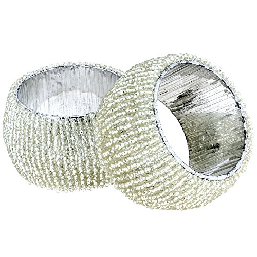 Studio : ShalinCraft Publisher : ShalinCraft Binding : Kitchen Product Description "Even the tiniest of details can make a big impact on the look of your tablescape for a special get-together. Adding tiny flourishes to bring elegance to the look of your table can transform any ordinary dinner party into a truly memorable affair, and our Handmade Indian Silver Beaded Napkin Rings are the perfect special something to make any dinner table look one of a kind. Nothing says elegance quite like the color silver with its cool glow and shine. Our Handmade Indian Silver Beaded Napkin Rings capture the beauty of the metallic hue with beautiful resin beads that cover the entire exterior of each and every ring. The shimmering silver beads will look gorgeous against all types of table linens regardless of their color or pattern. The go-with-everything silver will bring a truly luxe look to your dinner table while keeping your napkins looking neat and tidy.