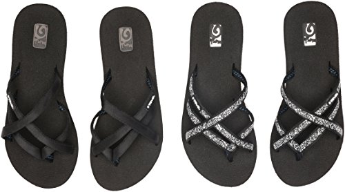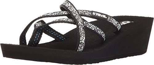 Teva Women's Mush Mandalyn Ola 2 Pack Wedge Flip Flop, Black/Fleur Black, 8 M US