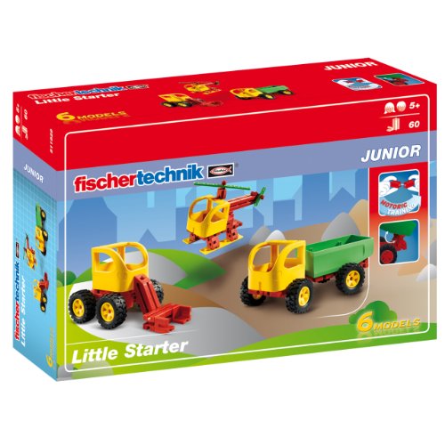 -. Binding : Toy -. Brand : fischertechnik -. EAN : 4048962111262 -. Feature : 60 colorful components for building 6 fun models / Dump Truck, Helicopter, Van models and more! / High quality construction--durable and built for play / Hours of fun for children age 5 and up / Made in Germany -. IsAdultProduct : 0 -. ItemPartNumber : 511929 -. Label : Fischertechnik -. Manufacturer : Fischertechnik -. Model : 511929 -. MPN : 511929 -. PackageQuantity : 1 -. PartNumber : 511929 -. ProductGroup : Toy -. ProductTypeName : TOYS_AND_GAMES -. Publisher : Fischertechnik -. Studio : Fischertechnik -. Title : fischertechnik Junior Little Starter