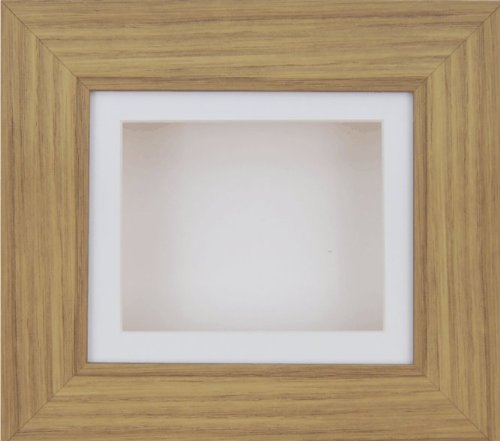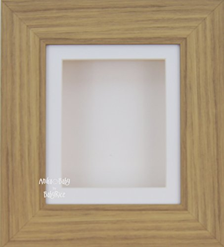 -. Title : BabyRice Deep Box Display Frame for 2D 3D Art Objects Medal Keepsake Baby Casts 1st Bootees Flowers Oak effect / White Mount / White backing
