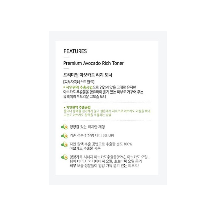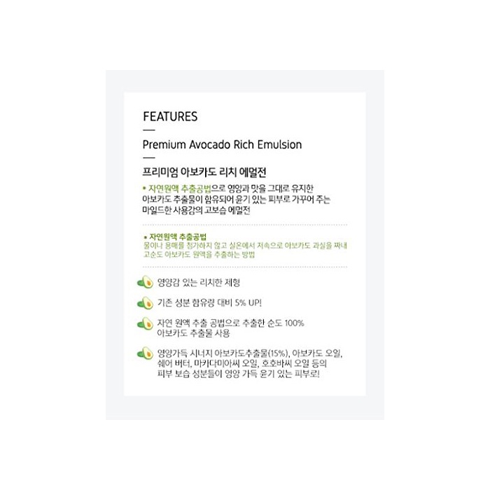 영양 충분히 아보카도 추출물 10%와 아보카도 오일,세라미드 함유