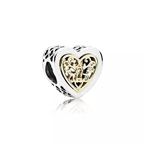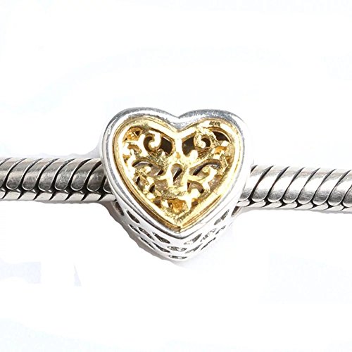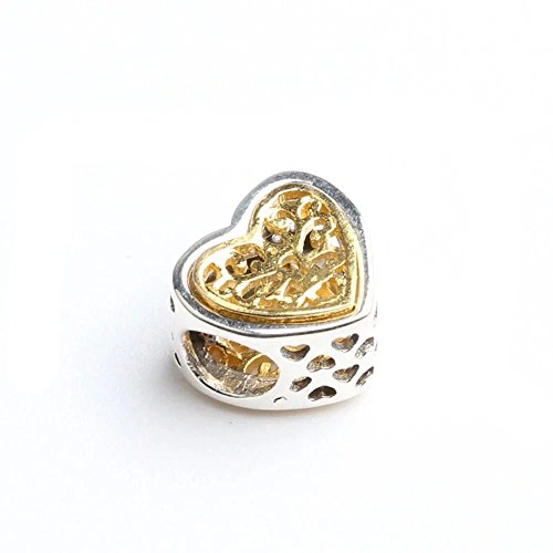Angelbeads Locked Hearts Charm Bracelet 925 Sterling Silver Heart Charm with 14k pattern