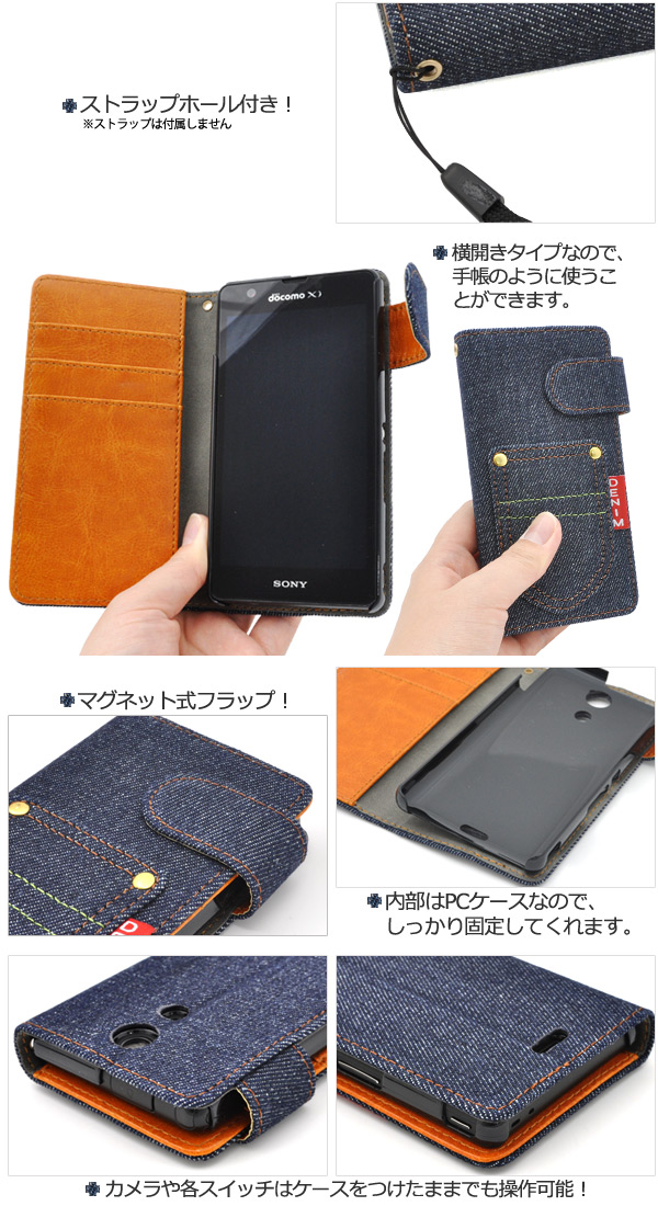 Xperia A SO-04E用デニムデザインスタンドケースポーチ(ジーンズデザイン)