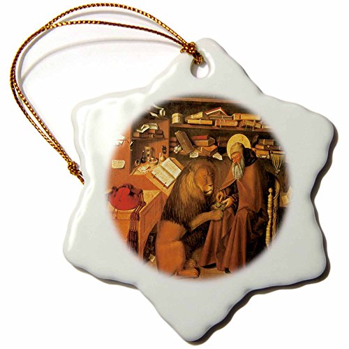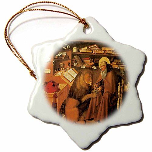 3dRose orn_127048_1 Saint Jerome in His Study by Colantonio Snowflake Ornament Porcelain, 3-Inch