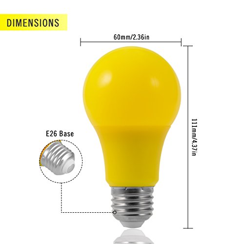 JandCase LED Yellow Light Bulbs, 40W Equivalent, A19 Bug Light Bulbs with Medium Base, 6 Pack