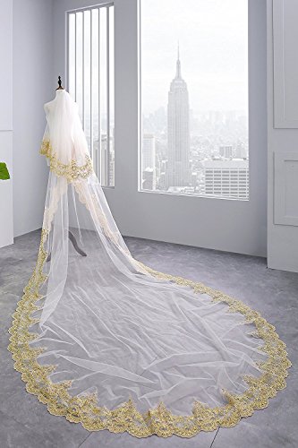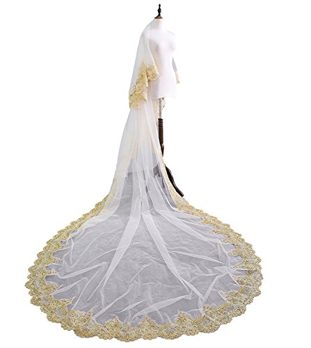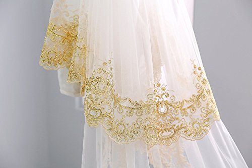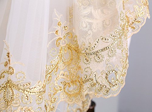 (Portsvy)/Accessories/Scarves/DIRECT FROM USA/Portsvy 2T Wedding Veils Gold Lace Sequins Applique Lace Wedding Veils For Brides