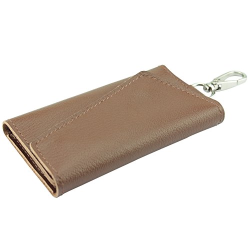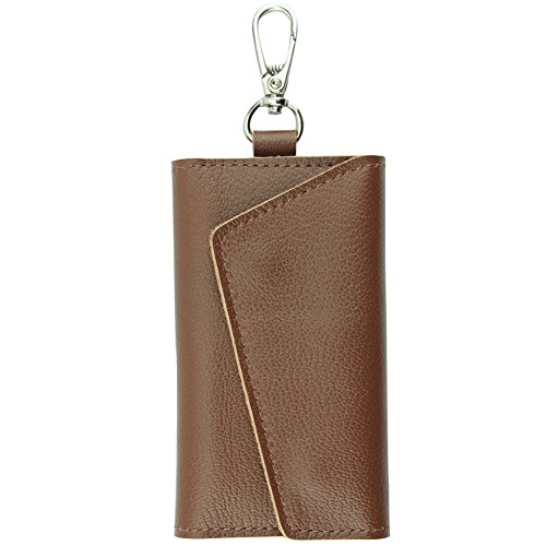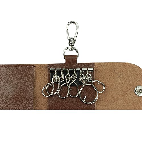 Product Description This leather key case is made with full grain soft genuine leather. It has a threaded bolt that unscrews to easily attach your keys. There is also a handy clip that you can clip to your backpack, purse or belt loop.