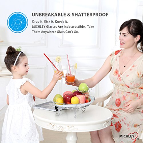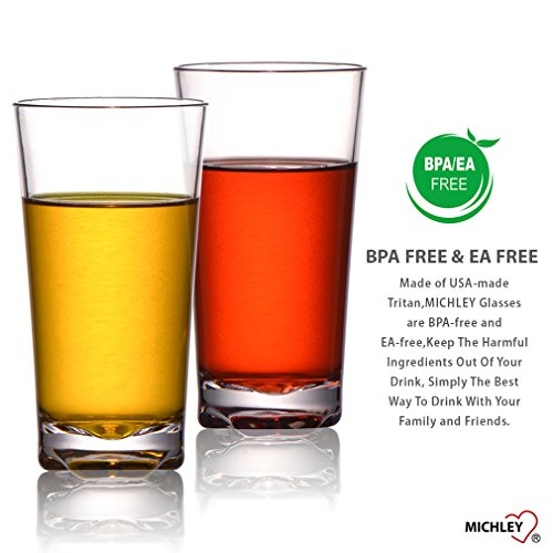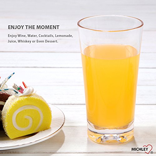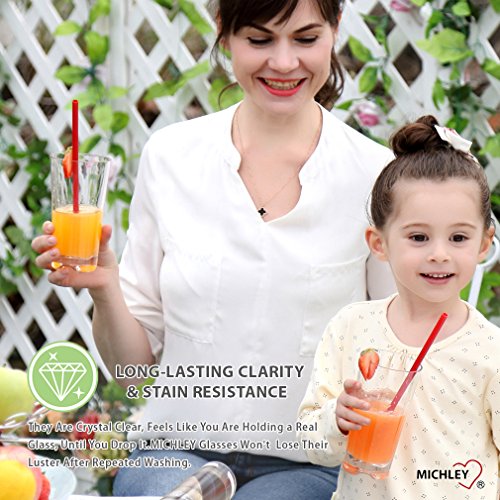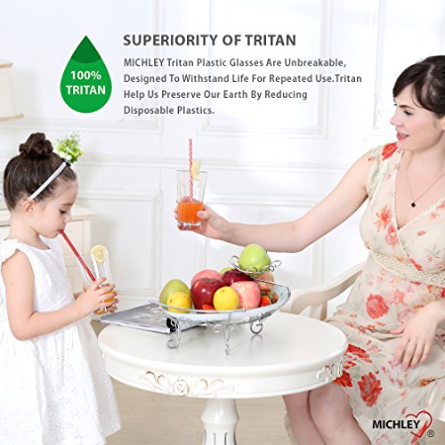 Studio : MICHLEY Publisher : MICHLEY Product Description Set consists of 4 break-resistant restaurant quality plastic tumblers. These sleek crystal-clear tumblers will match any place setting or table decor. Perfect for everyday use but are also elegant on a more formally set table. Great for patio, poolside, and other outdoor use! A safe and shatterproof drinking cup for children. BPA-free. Hand wash recommended. Use mild soap and water. Avoid abrasive scrubbing pads.