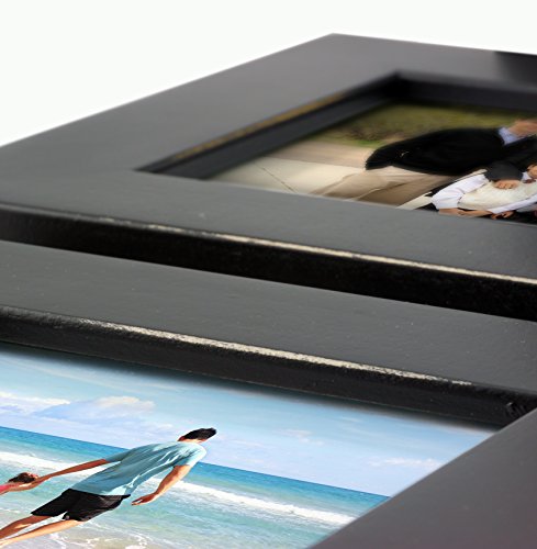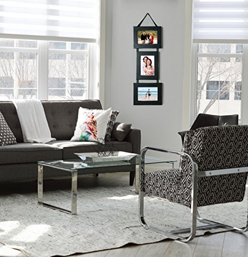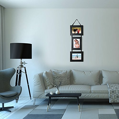 MyBarnWoodFrames - Lightly Distressed Set of 3, 5"x 7" Wood Picture Frames on Hanging Ribbon, Black (Landscape-Portrait-Landscape)