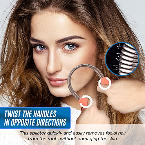 - 😱 NO MORE UNSIGHTLY FACIAL HAIR – This facial hair epilator will quickly and easily remove unattractive facial hair in the comfort and privacy of your own home. Simply bend the wire into a “U” shape & roll it across your face. No more painstakingly trying to pluck each hair with a pair of tweezers!