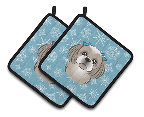 Caroline's Treasures Snowflake Gray Silver Shih Tzu Pair of Pot Holders BB1684PTHD, 7.5HX7.5W, Multicolor