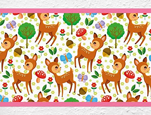 I-love-Wandtattoo b-10006 Nursery Wall Decal Border "Deers in the forest" Wallpaper Stripes Girl kids decoration