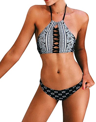 Title : Happy Sailed Women's Sporty Push up Print 2 piece Swimsuit Bikini Set, X-Large Black