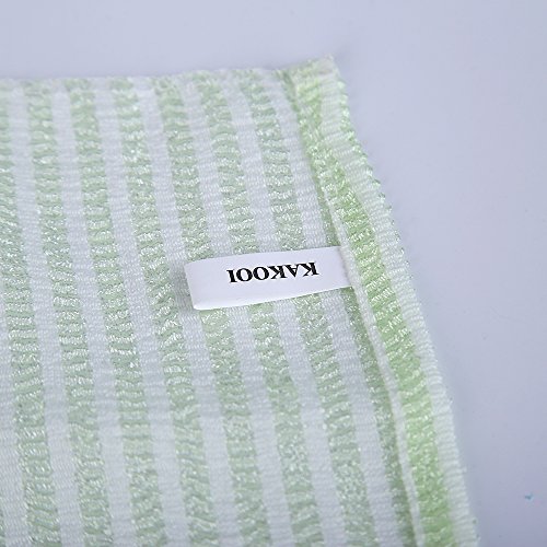 - SUITBLE FOR EACH FAMILY MEMBER:KAKOOI Exfoliating Nylon Bath Towels are available in Sky-Blue (hard rougher), Yellow (rougher),Pink (light rougher), Green (light rougher),Stripes (softer) .