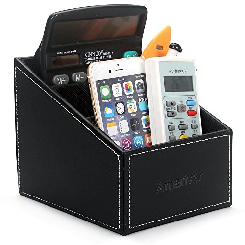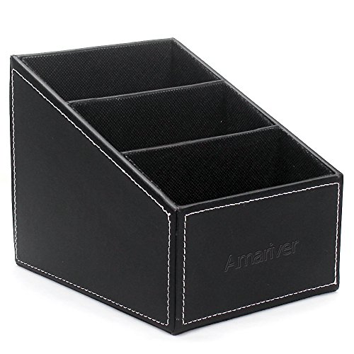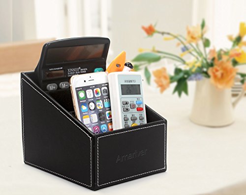 Amariver Black Pu Leather Remote Control/controller Tv Guide/mail/cd Organizer/caddy/holder