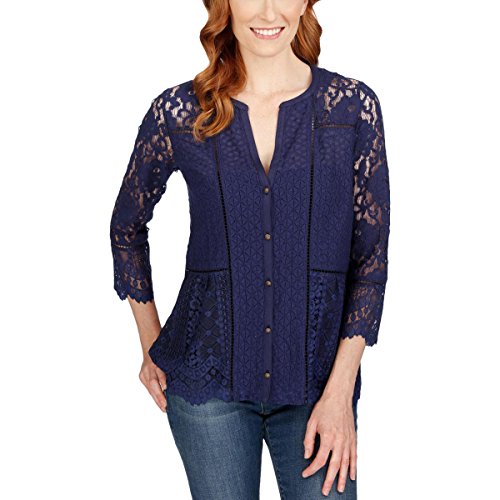 Product DescriptionLucky Brand plus long sleeve fashion knit peasant top with all-over tonal lace detail0