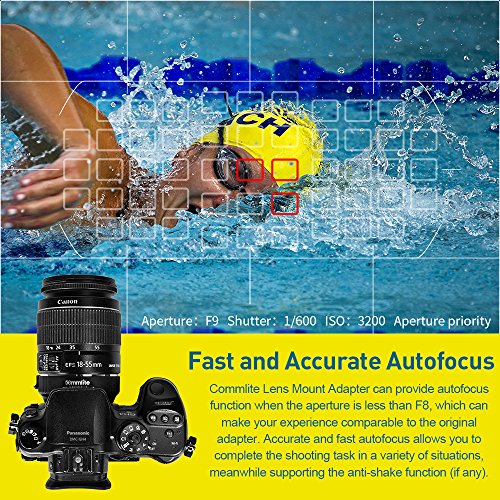 Commlite CM-AEF-MFT (B) Elektronischer Autofokus-Objektivadapter - Canon EF / EF-S Objektiv an Micro Four Thirds (MFT, M4 / 3) Kameragehause mit integrierter IS- und Blendensteueru