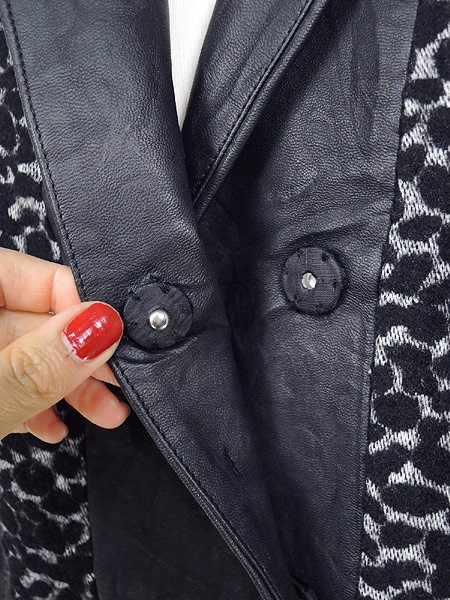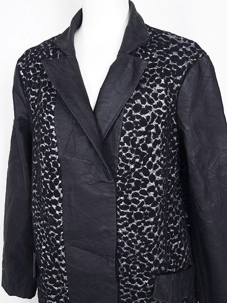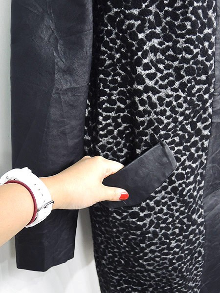 Ladies ブランド カラー黒 メール便不可 コンディション★★★ 素材レザー・ウール 表記サイズ スタッフコメントレオパード柄×レザーの組み合わせで クールなレザージャケット。 レザー部分はくたっとした質感です。 ※腰紐欠損 実寸サイズ 着丈 93 cm 身幅 49 cm 肩幅 43 cm 袖丈 58 cm ※ウエスト・ヒップ以外は平置き採寸