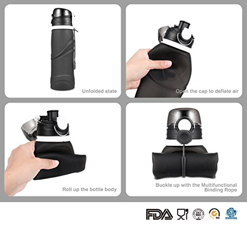 -. Feature : Safe Material--Made of medical grade (better than food grade) BPA-free silica gel and non-toxic, odorless material; approved by FDA in the U.S. / Innovative Design--Soft and collapsible design, saves space when it's put away and makes it portable for outdoor use; its innovative air valve allows air to fill up the bottle and stands straight, even when it's empty or contains only a small amount of liquid / Practical to Use--Wide-mouthed (63 mm) design makes it easy to clean the interior or add water and ice; the leak proof one-button switch opens the cap easily; the lock ring prevents the bottle from accidentally opening / Broad Application--Endures a wide range of temperatures from -40℃ to 100℃; use with refrigerated or boiled liquids; crash proof and anti-collision design makes it a perfect companion for bicycling, running, swimming, outdoor activities, extreme sports, and more / Large Capacity--Large capacity of 750 mL, and only 155 g in weight; allows you to hydrate your body at any time; enjoy the outstanding design and convenience of this bottle compared to most products on the market